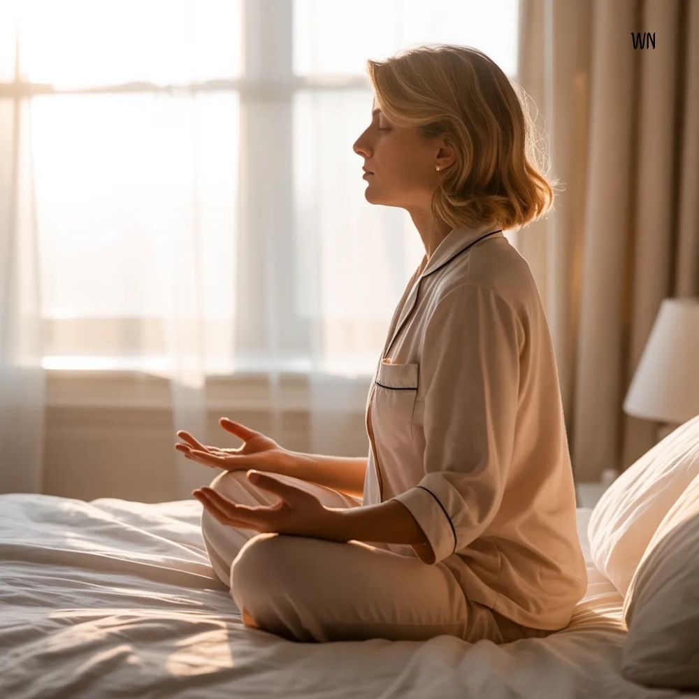 A simple approach is to inhale slowly through your nose, pause briefly, and exhale gently through your mouth. Repeat this for a few minutes, without forcing anything. This practice encourages blood vessels to relax and helps lower early-morning stress signals.
